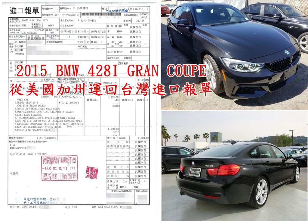 2015 BMW 428I GRAN COUPE從美國加州運回台灣進口報單.jpg