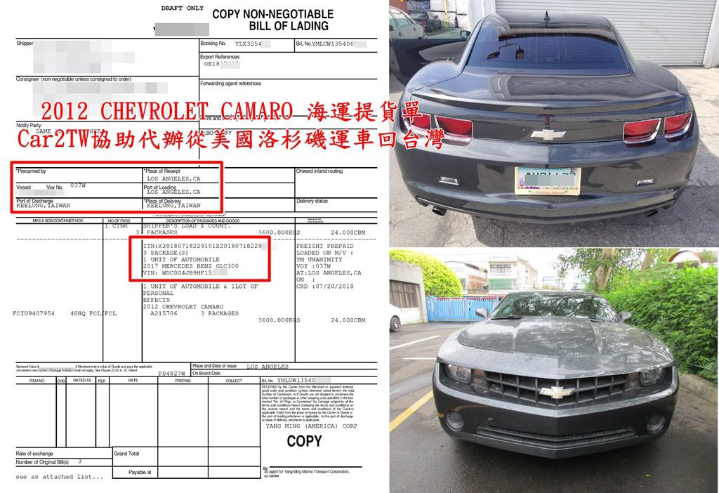 2012 CHEVROLET CAMARO 海運提貨單,Car2TW協助代辦從美國洛杉磯運車回台灣.jpg
