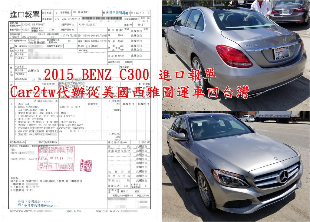 在台灣辦理進口時汽車進口關稅是一定要繳的,台灣留學生還有免稅車條款嗎?下圖為2015 BENZ C300為新竹陳大哥從美國洛杉磯運回台灣的車,