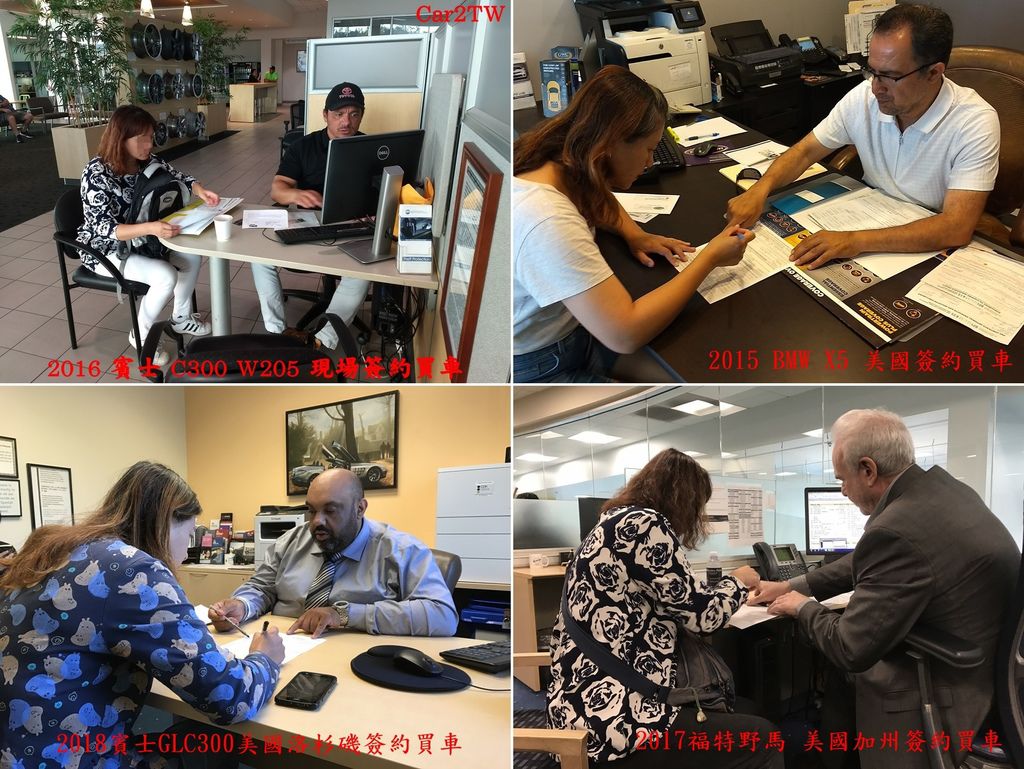 如下圖為Car2TW購買2017賓士C300 、2018賓士GLC300、2017福特野馬 、2015 BMW X5在美國買車簽約時的照片,