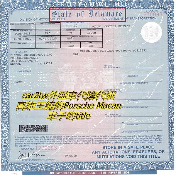 從上圖title的紅色框線中,看到車子的title在德拉瓦州![]()